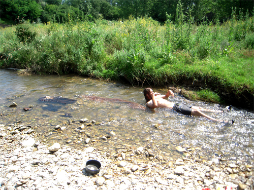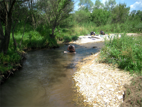 Da kamen wir an einem Bach vorbei, der zu einem Bad einlud.